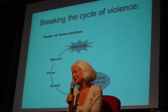 Die Unesco-Beraterin Dr. Scilla Elworthy berührte die Teilnehmer mit einem Vortrag und Workshop zum Thema der ganzheitlichen Friedensarbeit und Möglichkeiten der Konfliktlösung.